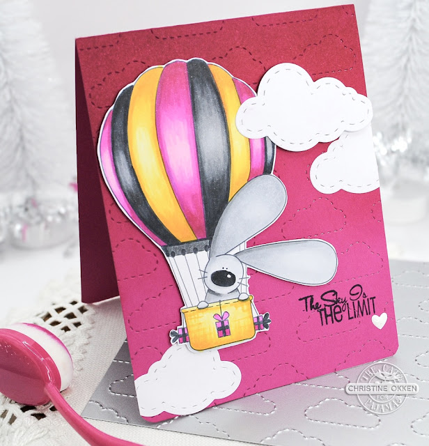 Well, its the end of a sweet era for The Cat’s Pajamas. I’m both sad and excited for Alma and all that is in store for her in the future. I’ve had the best time the last 12 or so years with the team. So, for my last official TCP post, I pulled out a favourite of mine....Sky’s the Limit. I’ll always love this bunny! I printed the digi image large enough to cover a good portion of the card, and coloured the design with Copics in The Cat’s Pajamas colours! It seemed the perfect way to send Alma off with lots of hope.